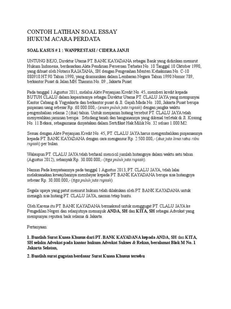 Contoh Soal Kasus Hukum Acara Perdata / Jawaban Soal Semester Pendek Hukuim Acara Perdata Pdf : Contoh contoh soal yang bermanfaat untuk menguji pemahaman kamu terhadap materi hukum acara perdata.